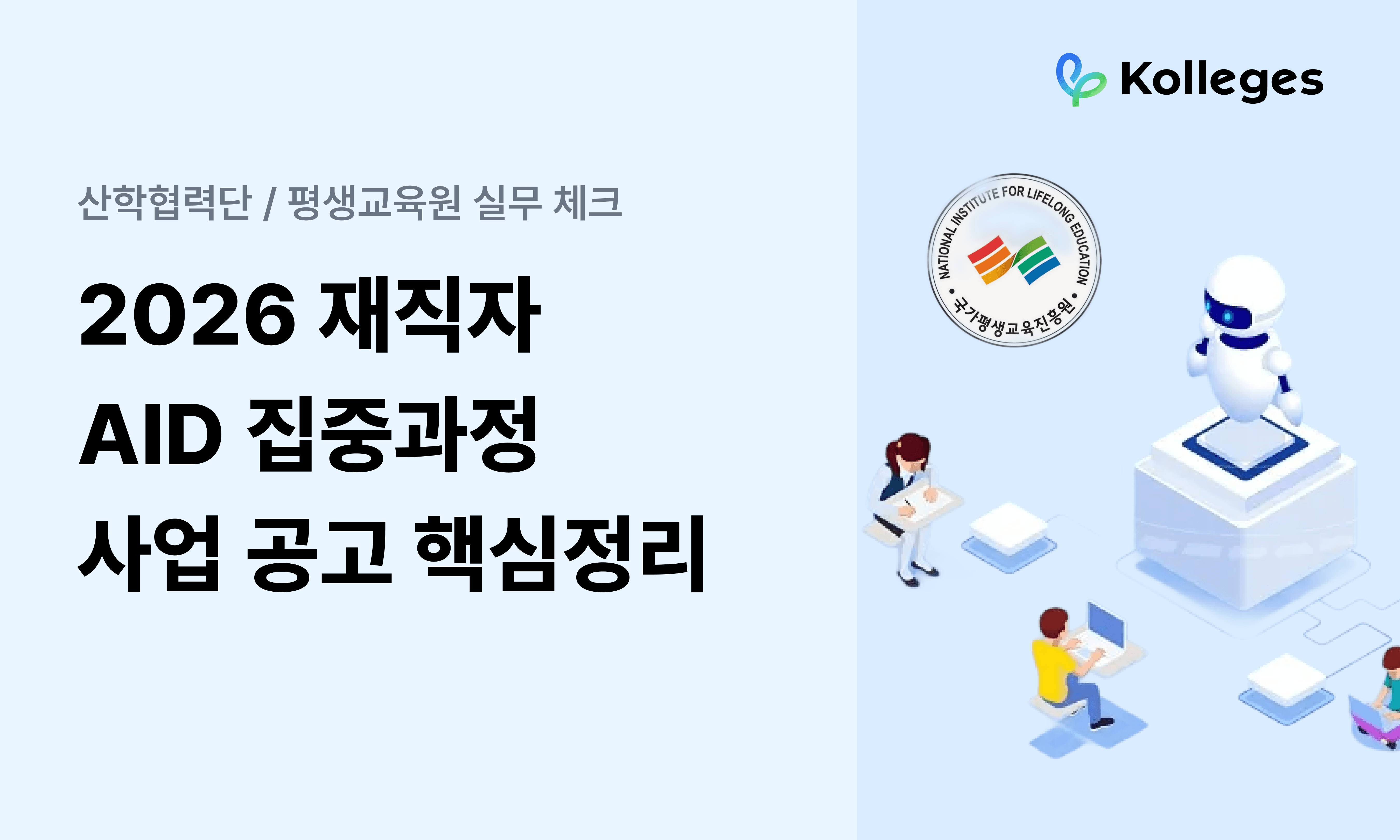 이번 사업은 성인 재직자가 평일 저녁·주말을 활용해 단기간 학습하고 곧바로 직무에 적용하는 재교육 지원 성격입니다. "강의를 잘 만들면 끝"이 아닙니다.