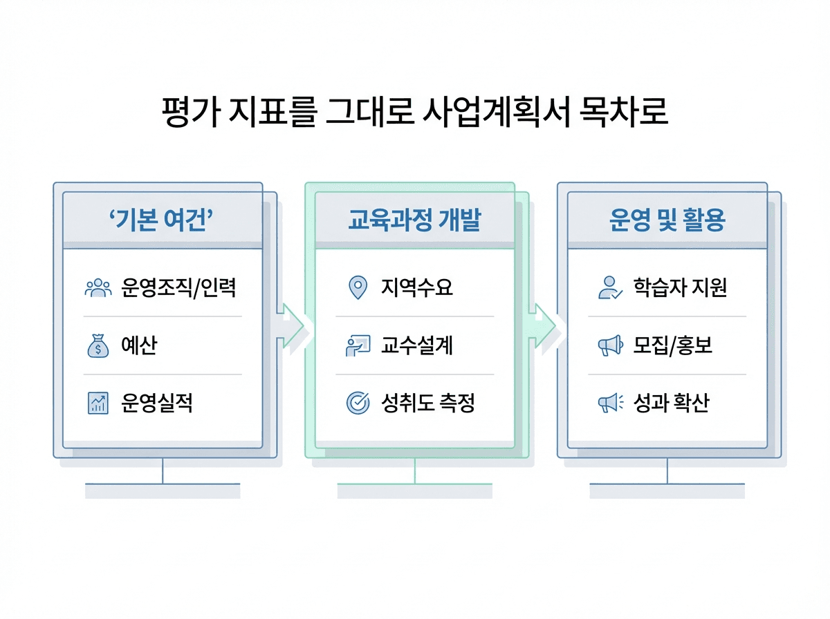 산학협력단·평생교육원 관점에서 심사위원이 보는 핵심은 세 가지입니다.