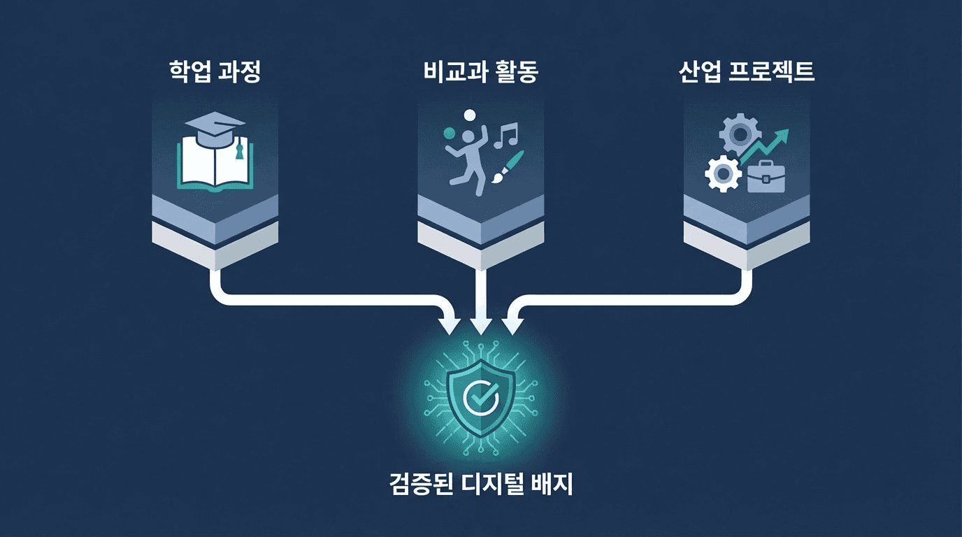 외부 기업 검증 배지 — 기업이 공동 설계하거나 검증한 배지는 학생에게 명확한 취업 신호