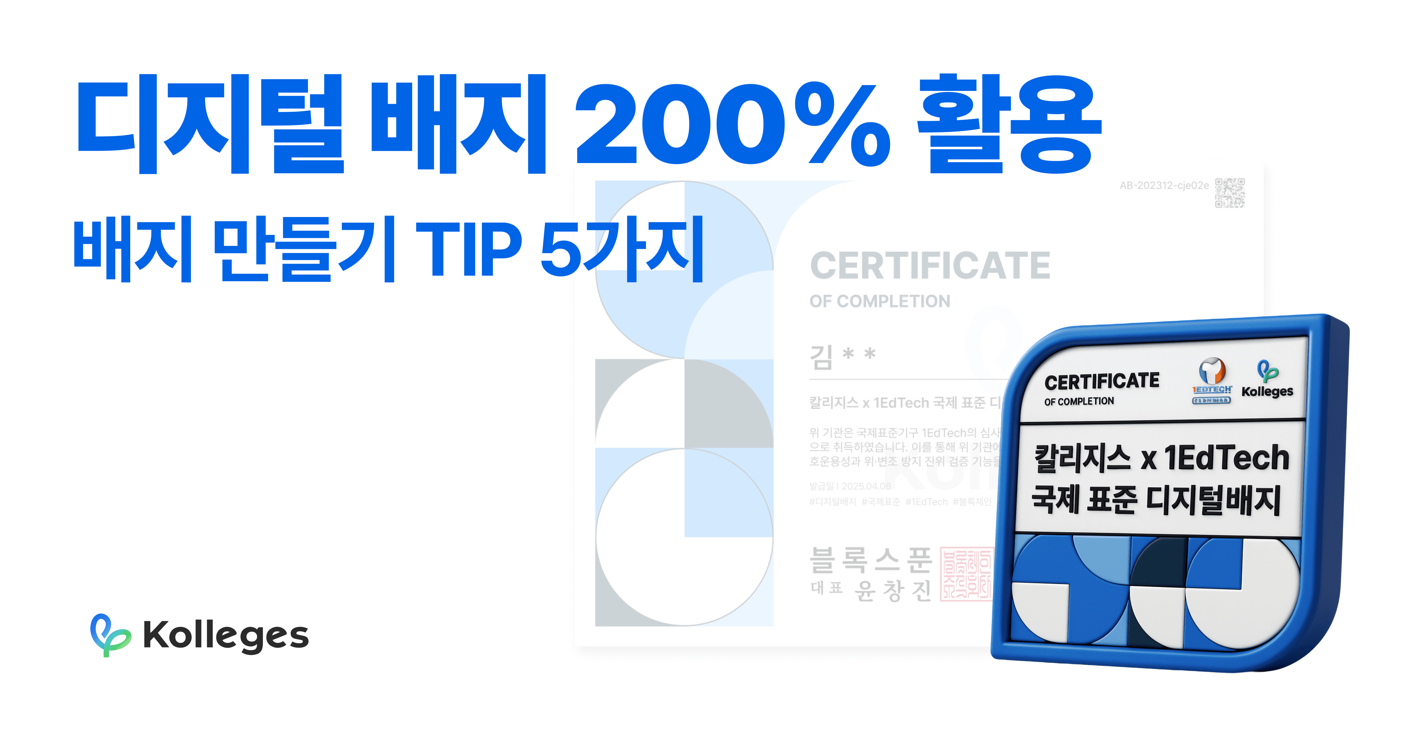 칼리지스는 디지털 배지를 통해 학습 이력과 성과를 증명하고, 브랜드 가치를 높이는 데 도움을 주고 있습니다.