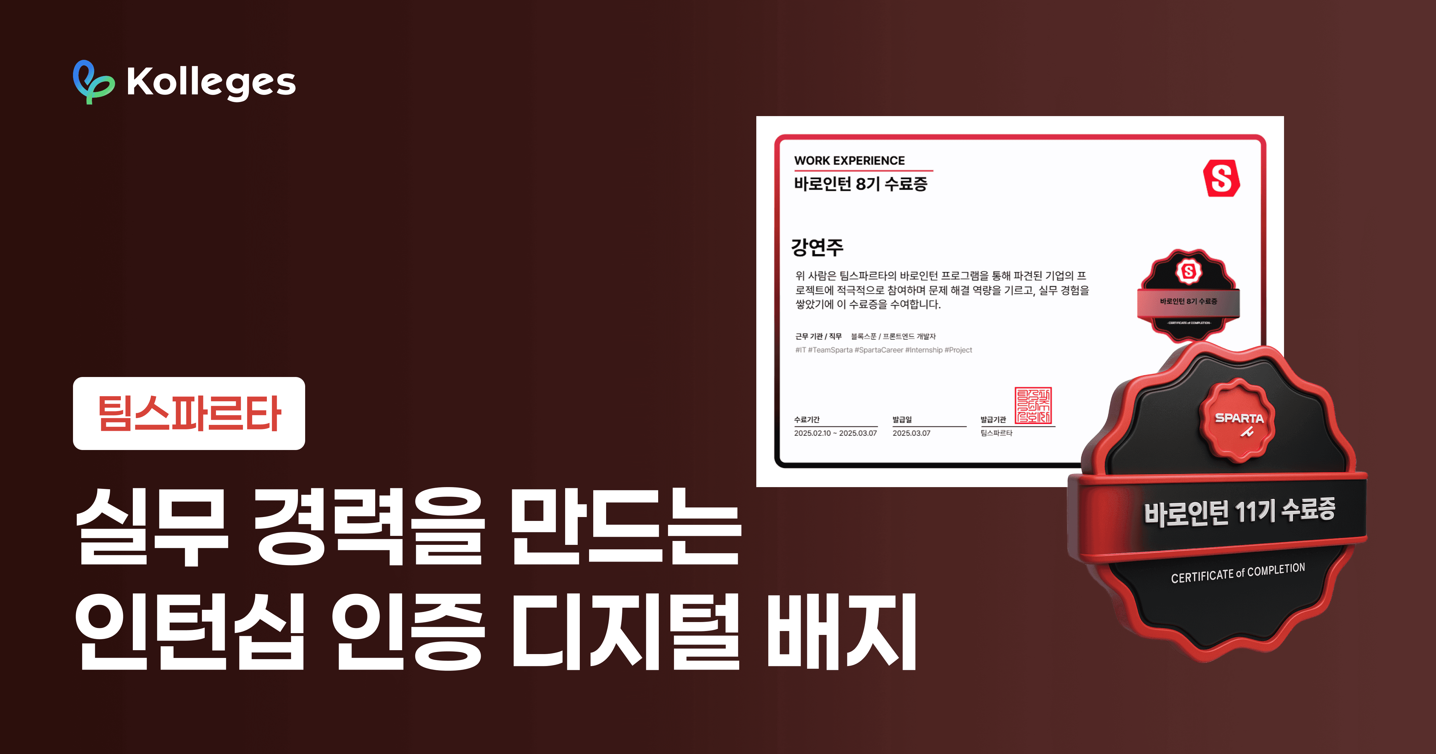 바로인턴을 성실하게 수료하신 여러분의 노력을, 디지털배지를 통해 팀스파르타가 공식 인증합니다!