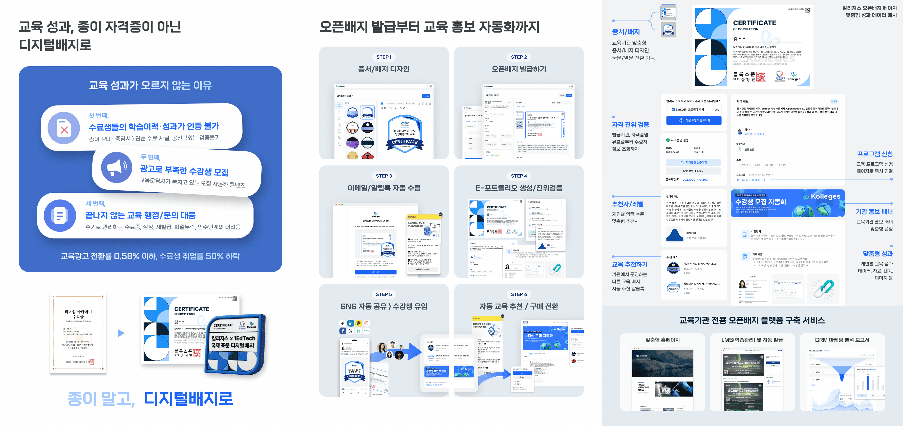 → 발급에서 끝나지 않고 검증·공유·성과관리·홍보까지 한 흐름으로 묶고, 국내 운영 환경에 맞춰 설계되어 있습니다.