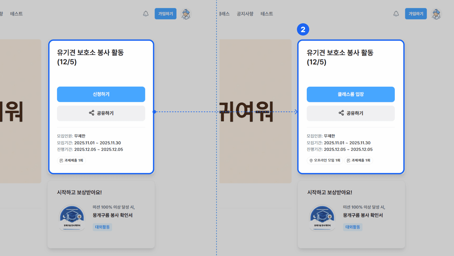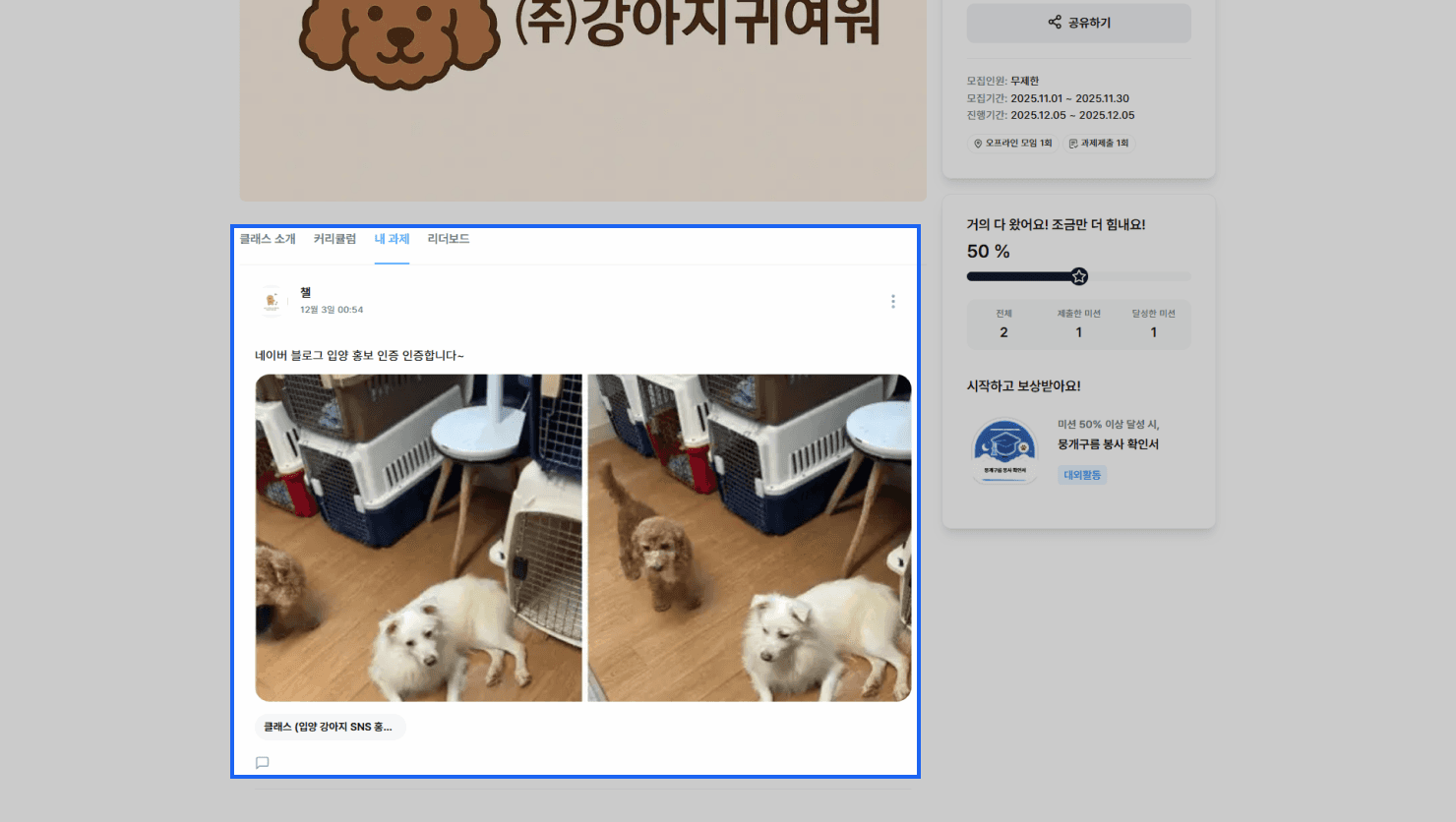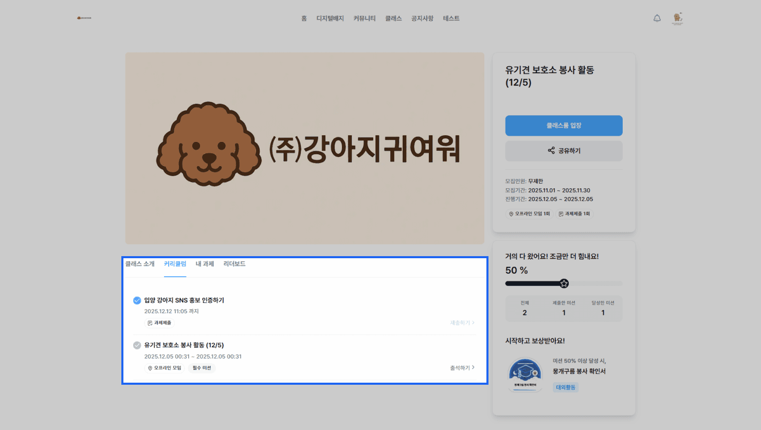 클래스에 등록된 미션의 보상 조건을 충족하면, 보상으로 등록된 배지를 발급 받을 수 있습니다.
