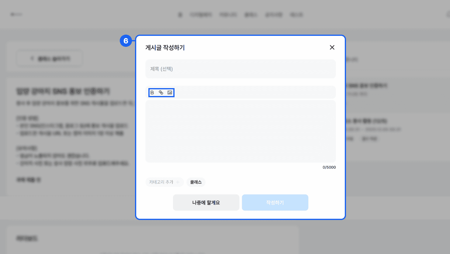 글 작성 시, 폰트 굵기 조절 및 이미지/링크 첨부도 가능합니다.