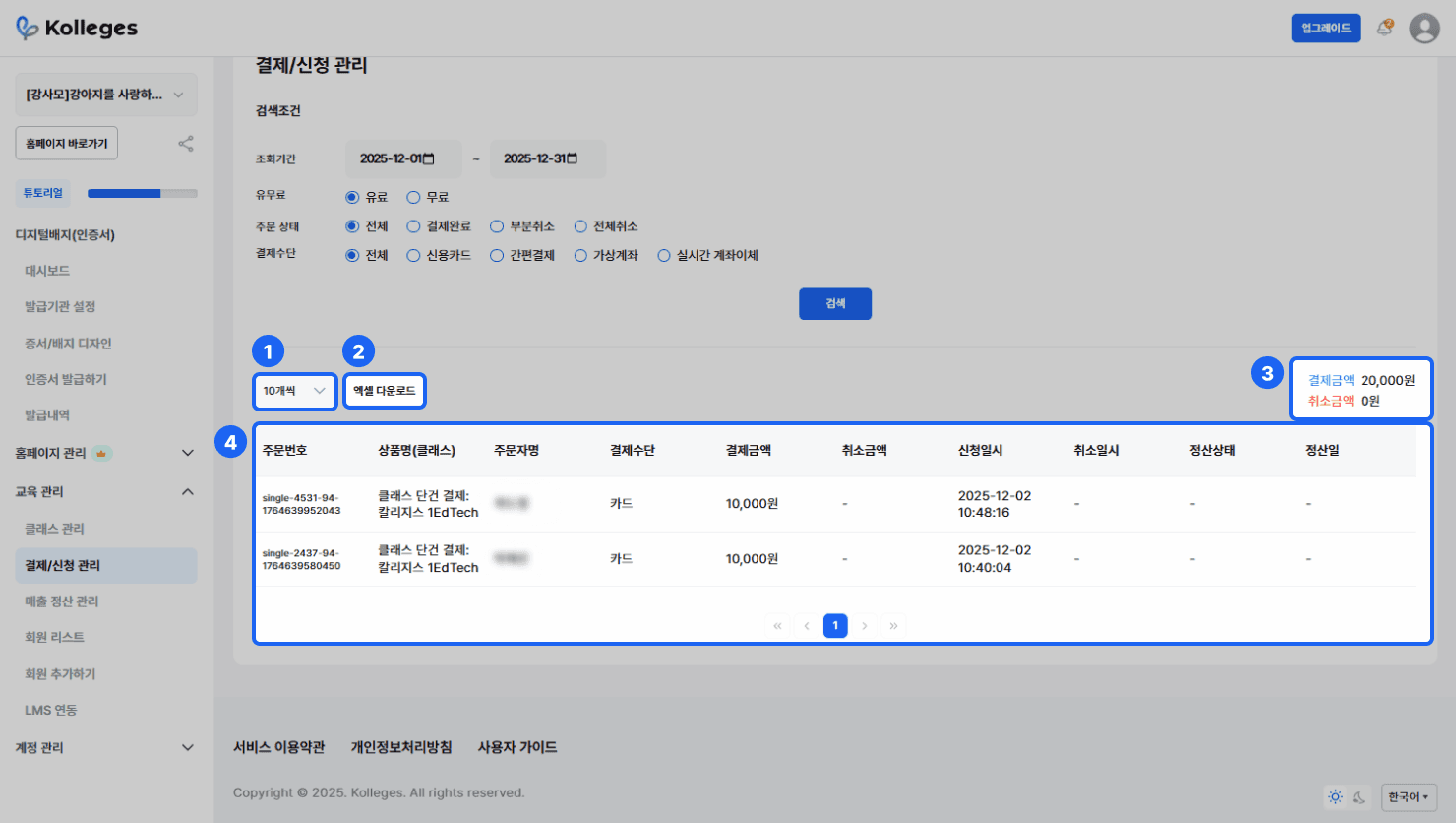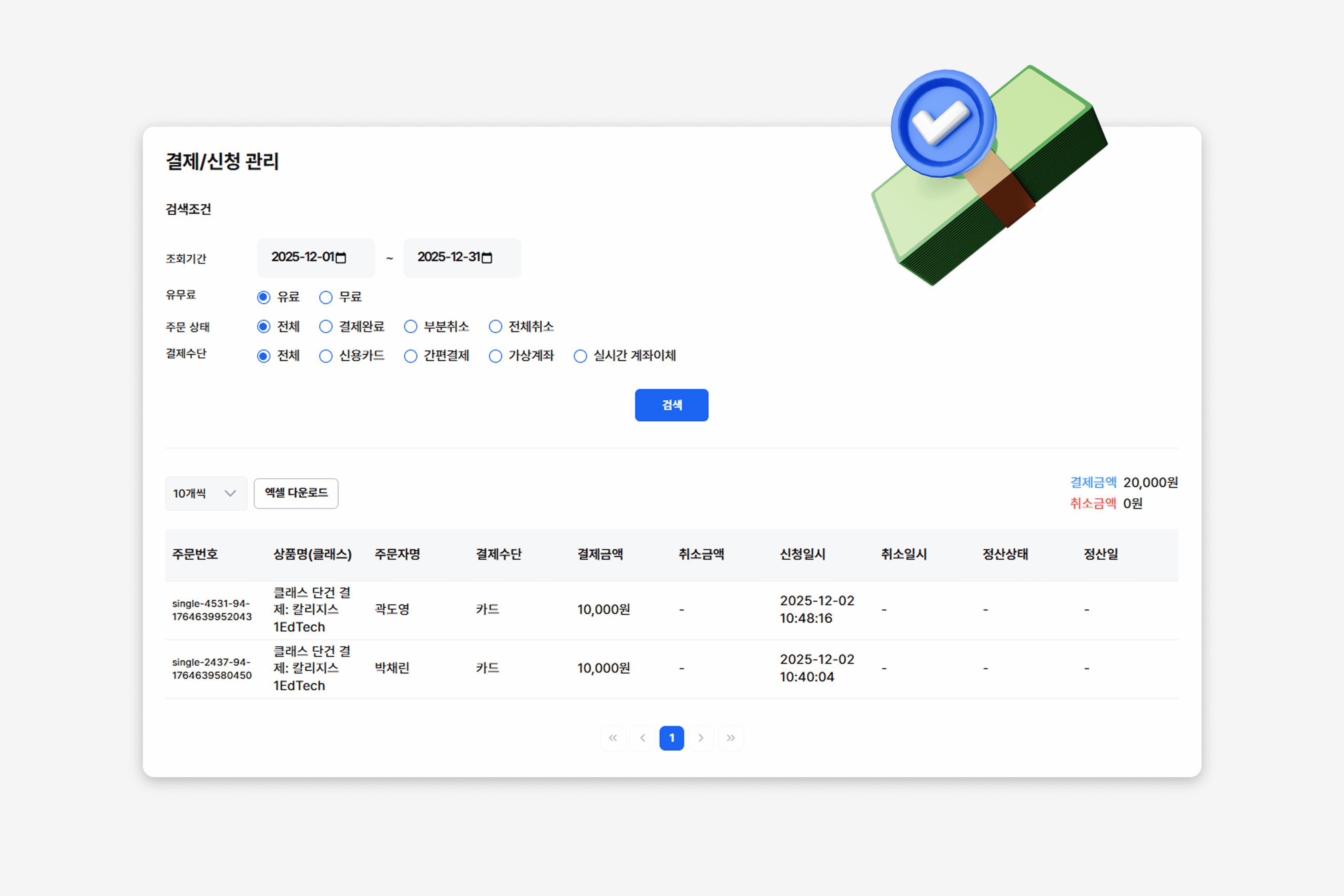 칼리지스 내 수강 신청 관리, 결제 내역 확인, 환불 처리 등 결제·신청 관리 기능을 효율적으로 활용하는 방법을 단계별로 안내합니다. 교육기관 운영자가 반드시 알아야 할 실무 중심 가이드입니다.